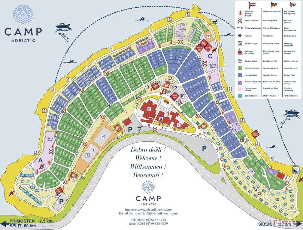 Camp Adriatic se nachází v krásném prostředí u křišťálově čistého moře v Primoštenu, obklopený borovicemi a středomořskou vegetací, a nabízí dokonalé spojení přírody, komfortu a autentické dalmatské atmosféry. Kemp poskytuje širokou škálu ubytování, včetně prostorných parcel, stanových zón a moderních mobilních domů, jako jsou Cliff, Deluxe a Premium, vhodných pro rodiny, páry i skupiny.